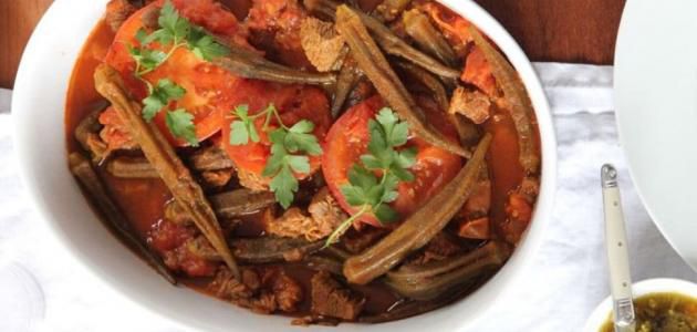- نسكب البامية باللحمة في طبق تقديم ونقدمه ساخنًا إلى جانب الأرز المطبوخ.