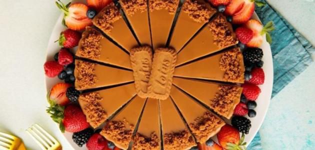 - يزين تشيز كيك اللوتس بحبات من بسكويت اللوتس.